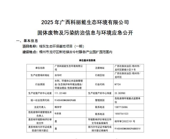 梧州?jng)科丽能环保U技有限公司成立?018q??0日,位于梧州?jng)龙圩区梧州q口再生资源加工园区内,业务늛危险废物的综合利用与环保技术服务支持。目前已具备废矿物a(b)QHW08Q、煤焦a(b)QHW11)两大cd险废物经营资质,危险废物处置能力辑ֈ20万吨/q_(d)其中废矿物a(b)10万吨/q、煤焦a(b)10万吨/q?br>
